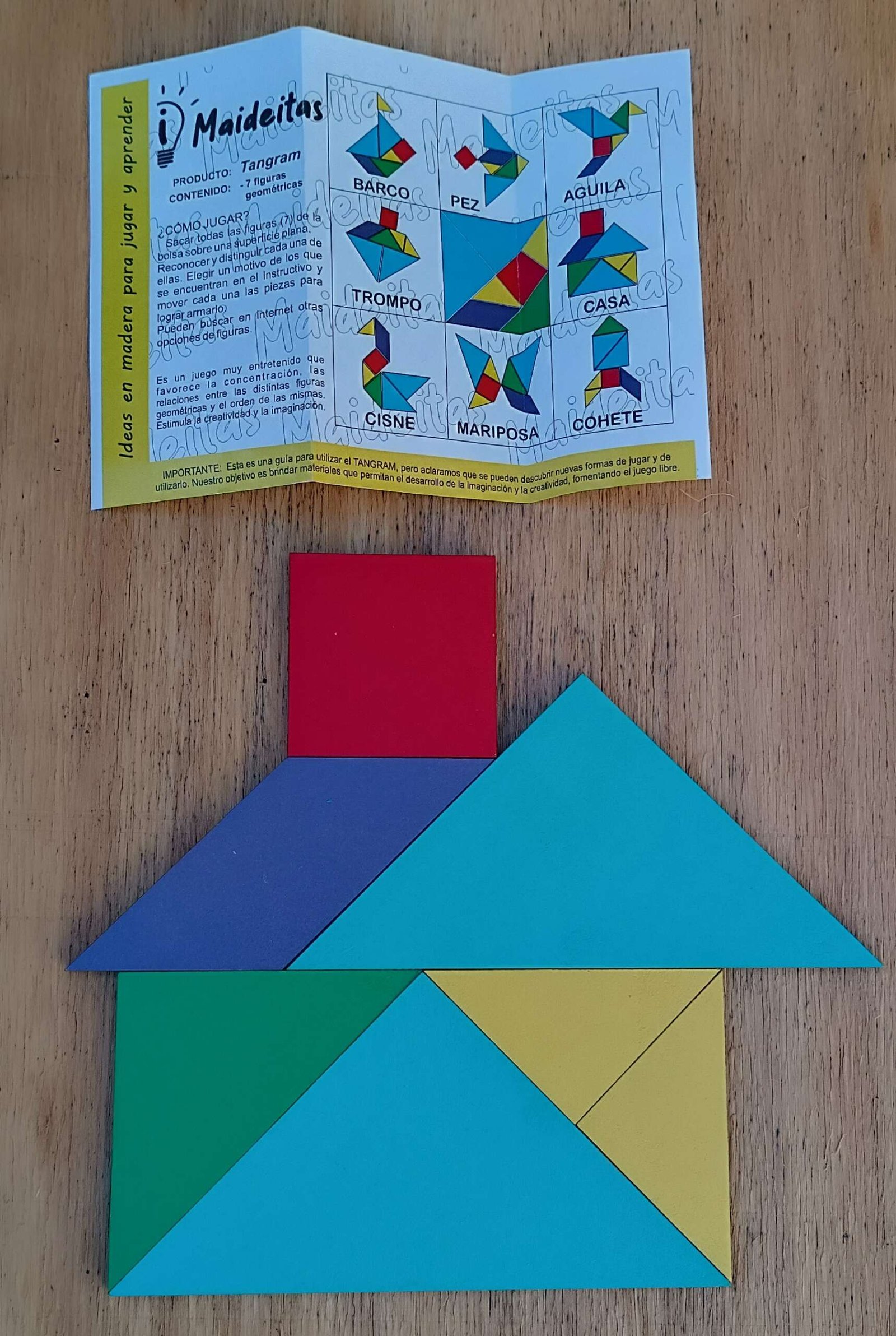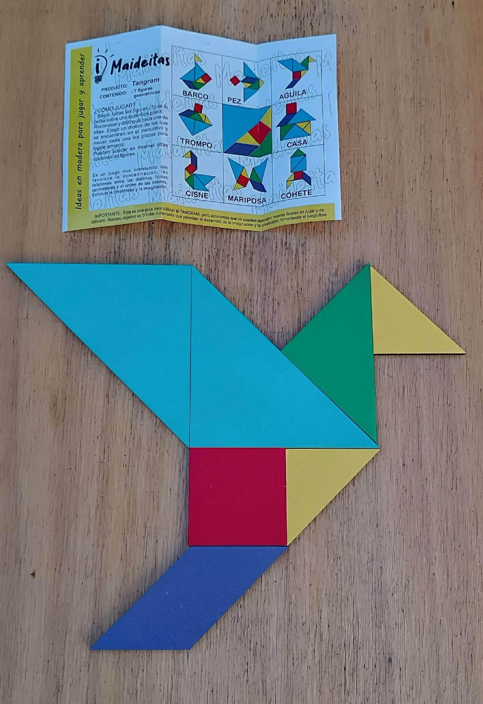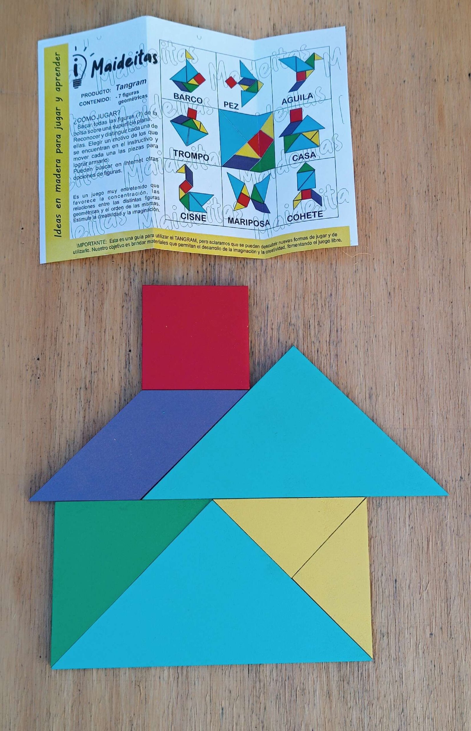 - Reglas del juego: Se deben usar las siete piezas obligatoriamente, sin superponerlas, para formar una figura.