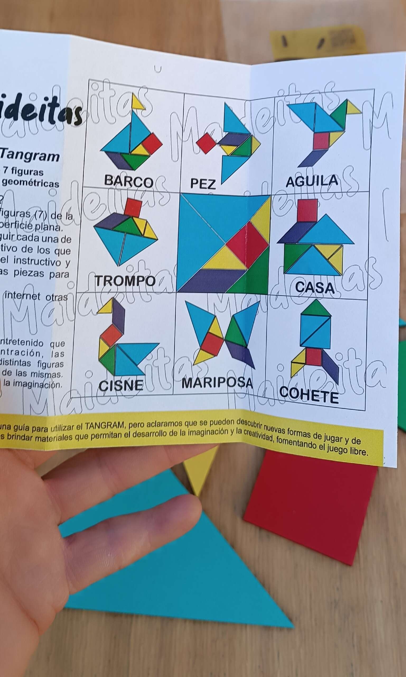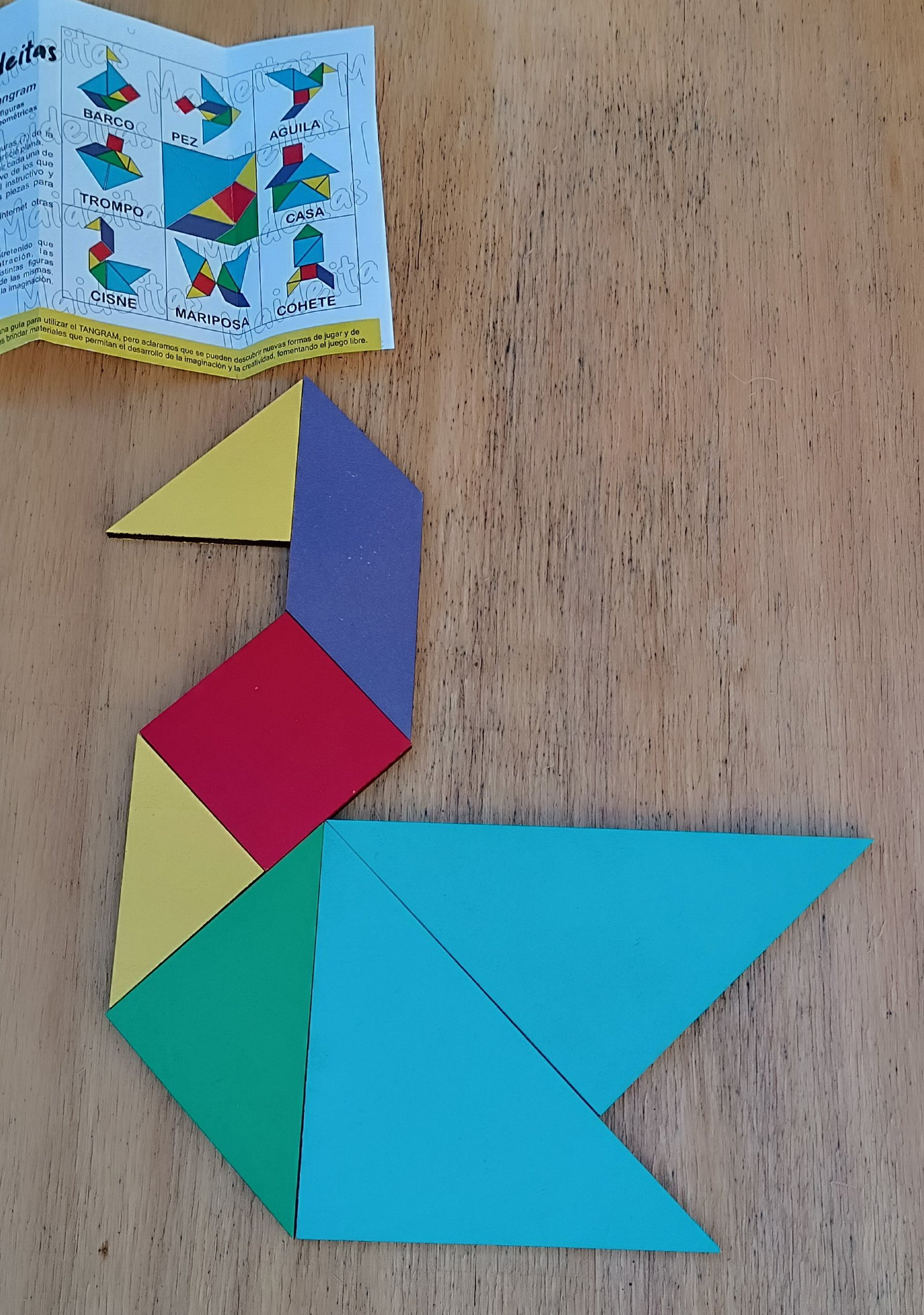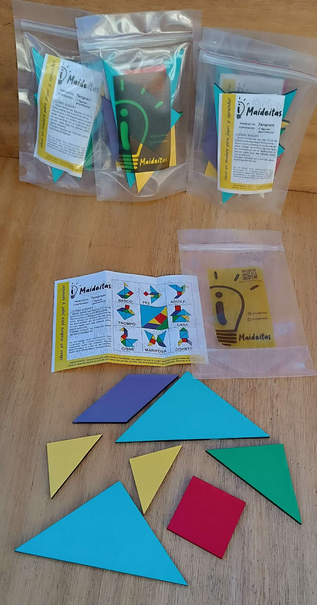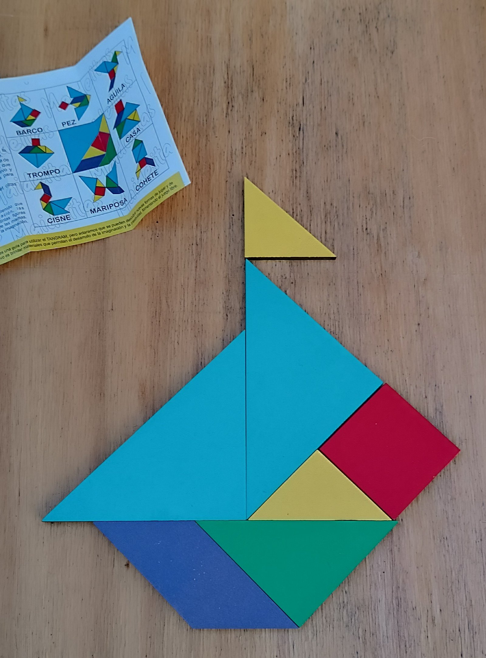 - Reglas del juego: Se deben usar las siete piezas obligatoriamente, sin superponerlas, para formar una figura.